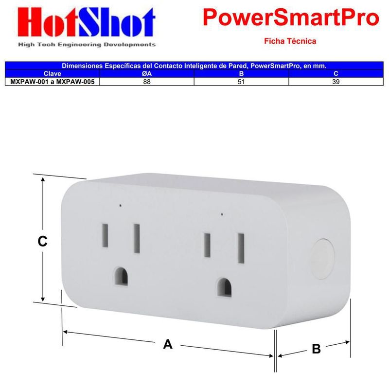 ElectrónicaCasa inteligenteInterruptores y enchufesSmart Plug Bluetooth Doble Contacto PowerSmartPro MXPAW-004 Contacto Inteligente Duplex