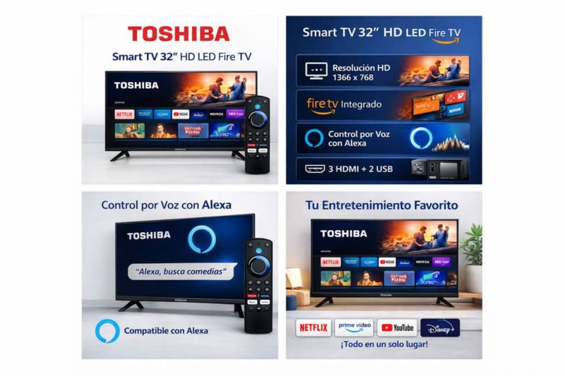 ElectrónicaTv y videoPantallasSmart TV Toshiba 32” 32V35RU HD LED Fire TV WiFi Alexa (2025)