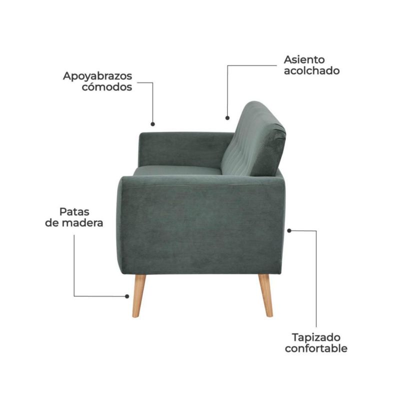 Sofá 3 Plazas Bracciano Top Living Respaldo Capitoné Verde