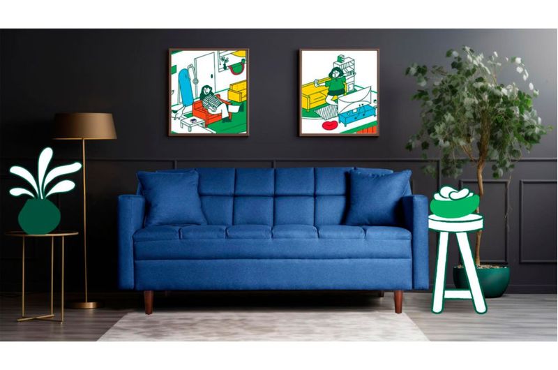 MueblesSalaSillones y SofásSofá 3 Plazas Makora De Lino Azul Modelo Arami