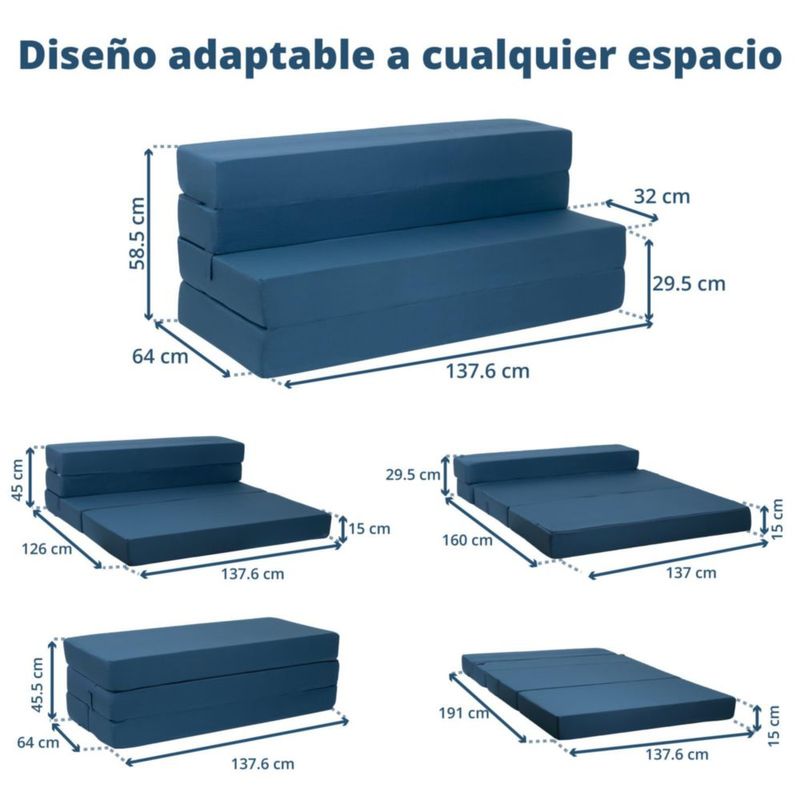 Sofa Cama Doble Sillon Plegable Colchon Matrimonial 2 En 1 Azul