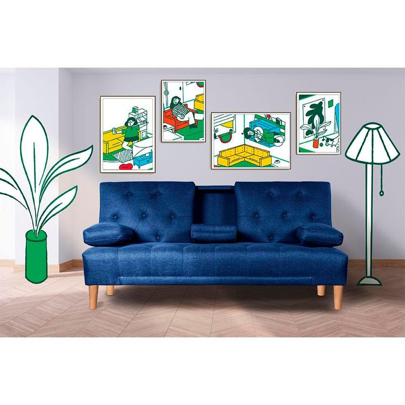 MueblesSalaSillones y SofásSofá Cama Makora Caroli Con Memory Foam, Color Azul, Lino Respaldo Reclinable De 3 posiciones.