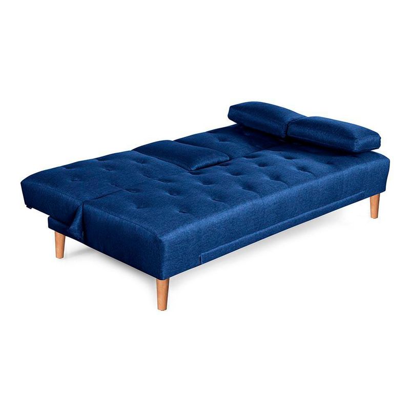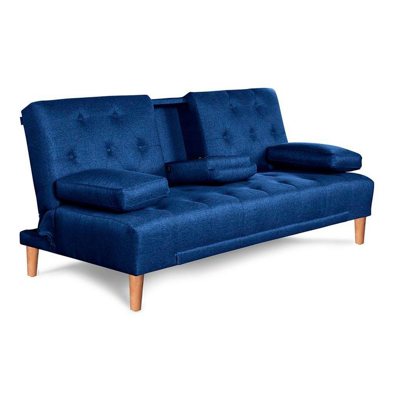 Sofá Cama Makora Caroli Con Memory Foam, Color Azul, Lino Respaldo Reclinable De 3 posiciones.