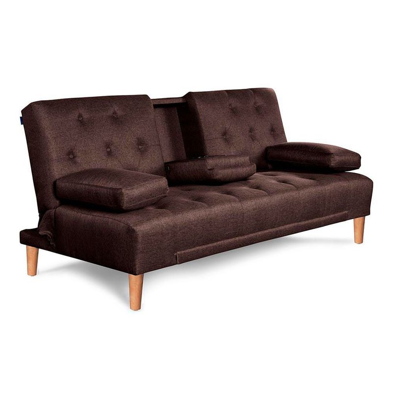 Sofá Cama Makora Caroli Con Memory Foam, Color Chocolate, Lino Respaldo Reclinable De 3 posiciones.