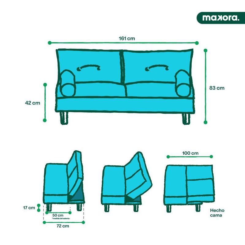 Sofá Cama Makora Caroli Con Memory Foam, Color Gris Oxford, Lino Respaldo Reclinable De 3 posiciones.