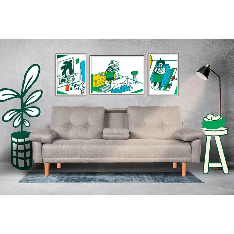 MueblesSalaSillones y SofásSofá Cama Makora Hendrix Con Memory Foam, Color Gris Claro, Lino Respaldo Reclinable De 3 posiciones.