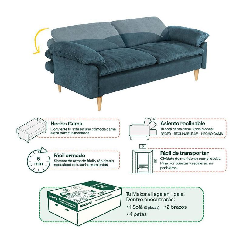 Sofá Cama Makora Milo Con Memory Foam Olivo Reclinable 3 Posiciones Recto Respaldo inclinado y Recostado Tela Velvet