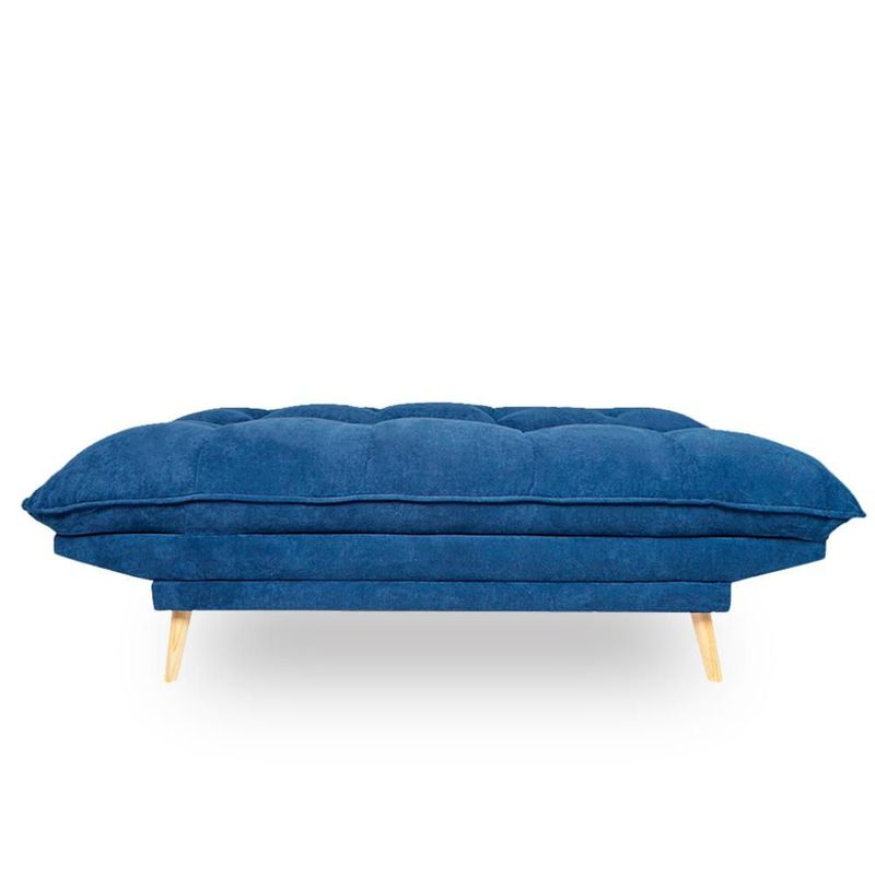 Sofá Cama Tapizado en Lino Azul. Estructura de Madera Sólida