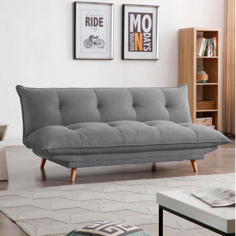 MueblesSalaSillones y SofásSofá Cama Tapizado en Lino Gris Claro. Estructura de Madera Sólida