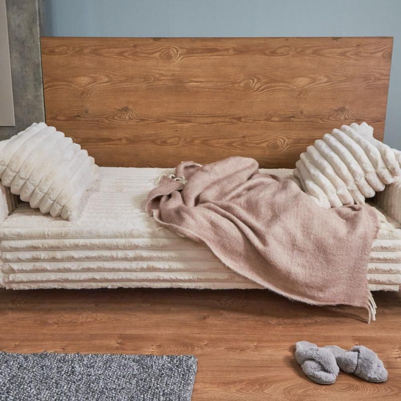 MueblesSalaSillones y SofásSofá Cama Tapizado en Tela Premium Extra Suave Marfil. Estructura de Madera Sólida y Patas de Metal