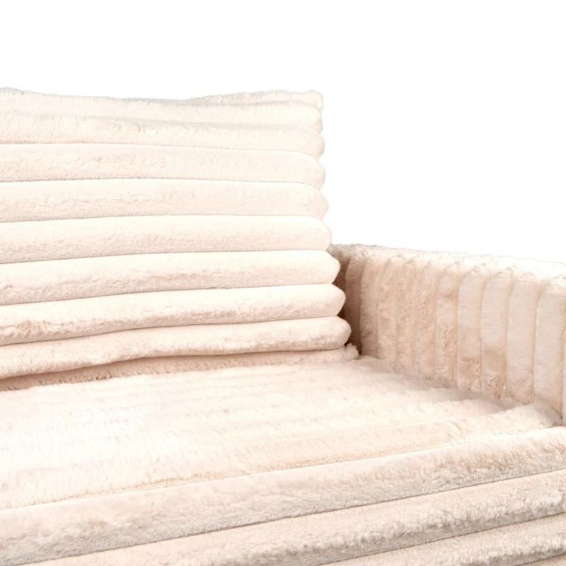 Sofá Cama Tapizado en Tela Premium Extra Suave Marfil. Estructura de Madera Sólida y Patas de Metal