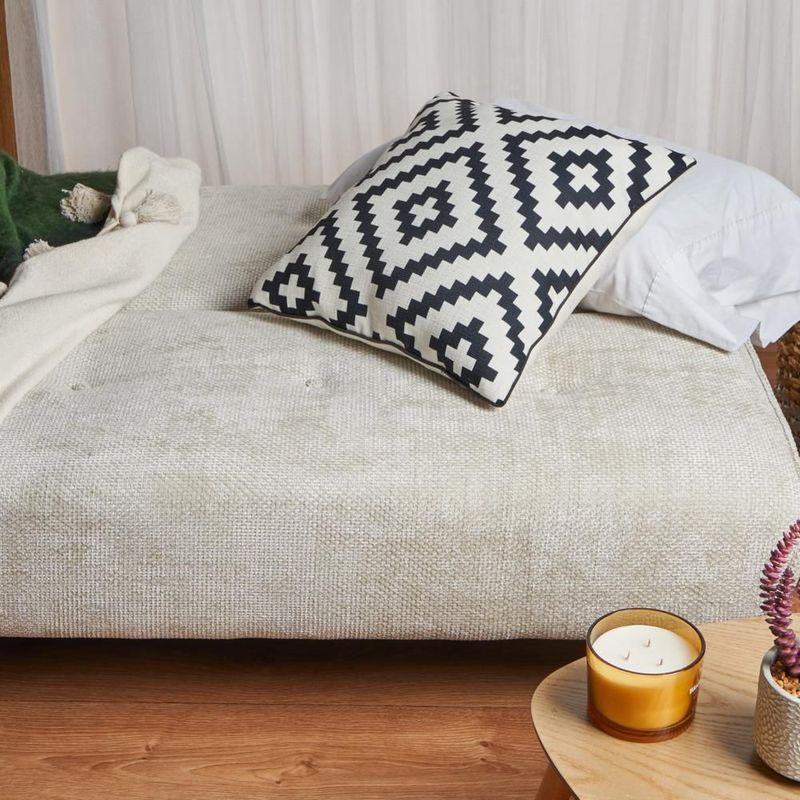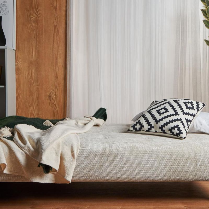 MueblesSalaSillones y SofásSofá Cama Tapizado en Tela Suave Repelente al Agua Color Beige. Estructura de Madera Sólida