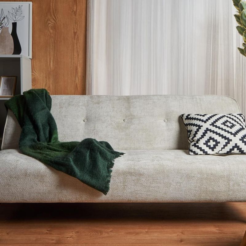 Sofá Cama Tapizado en Tela Suave Repelente al Agua Color Beige. Estructura de Madera Sólida