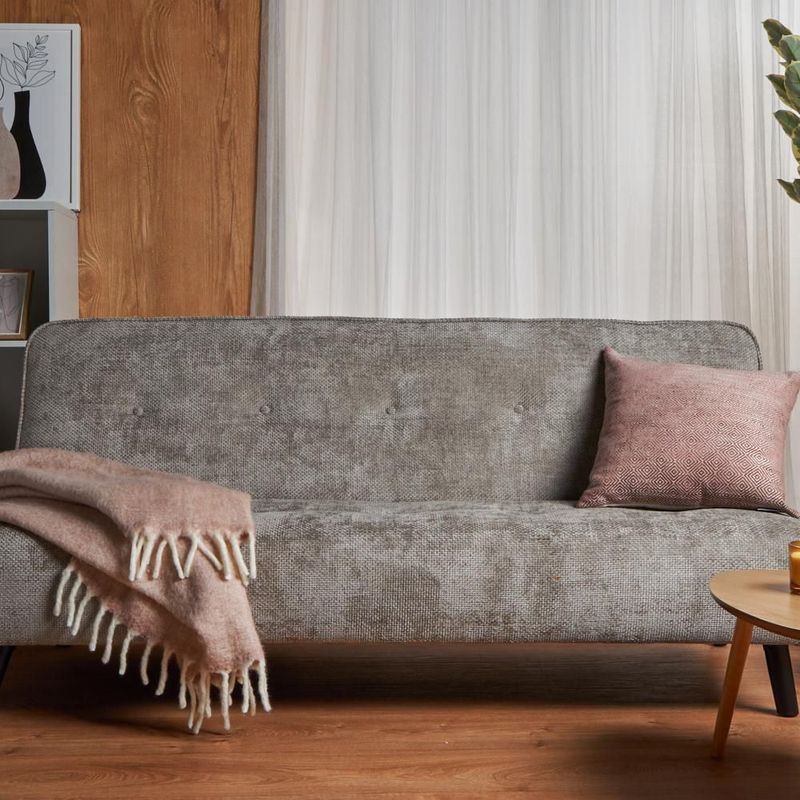 MueblesSalaSillones y SofásSofá Cama Tapizado en Tela Suave Repelente al Agua Color Gris Plata. Estructura de Madera Sólida