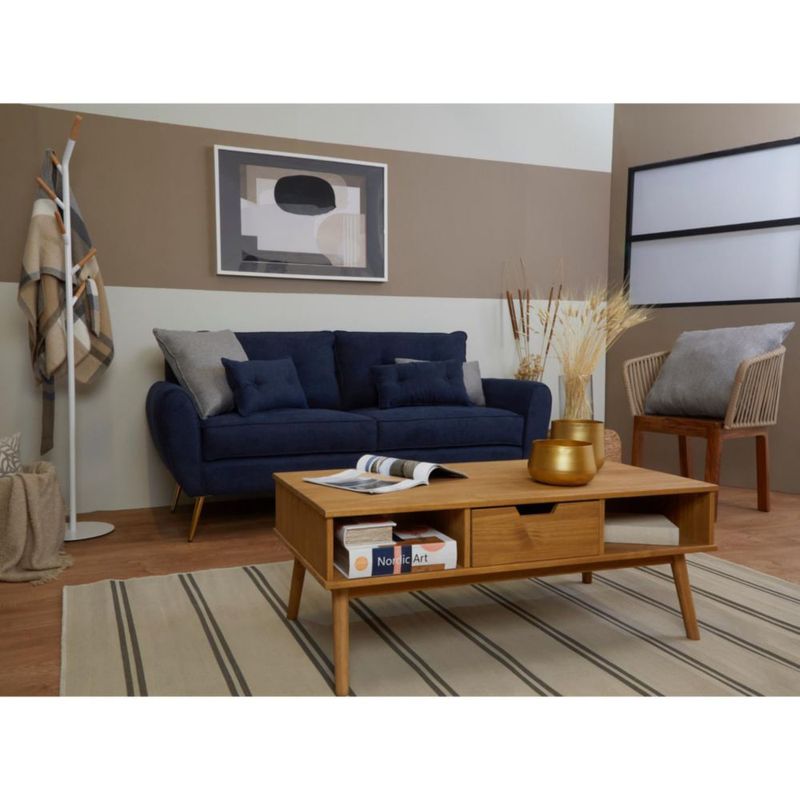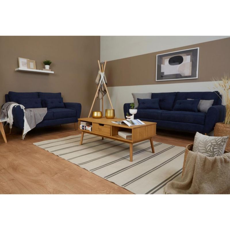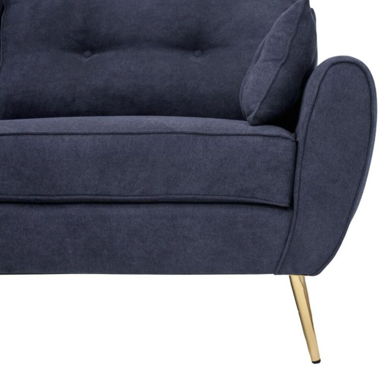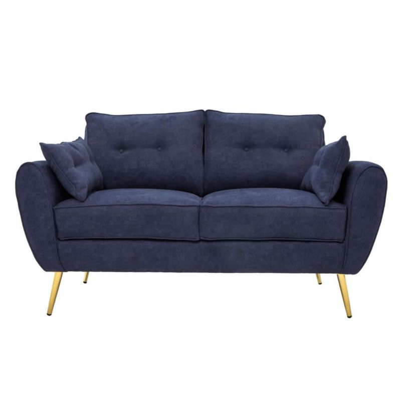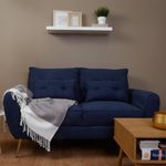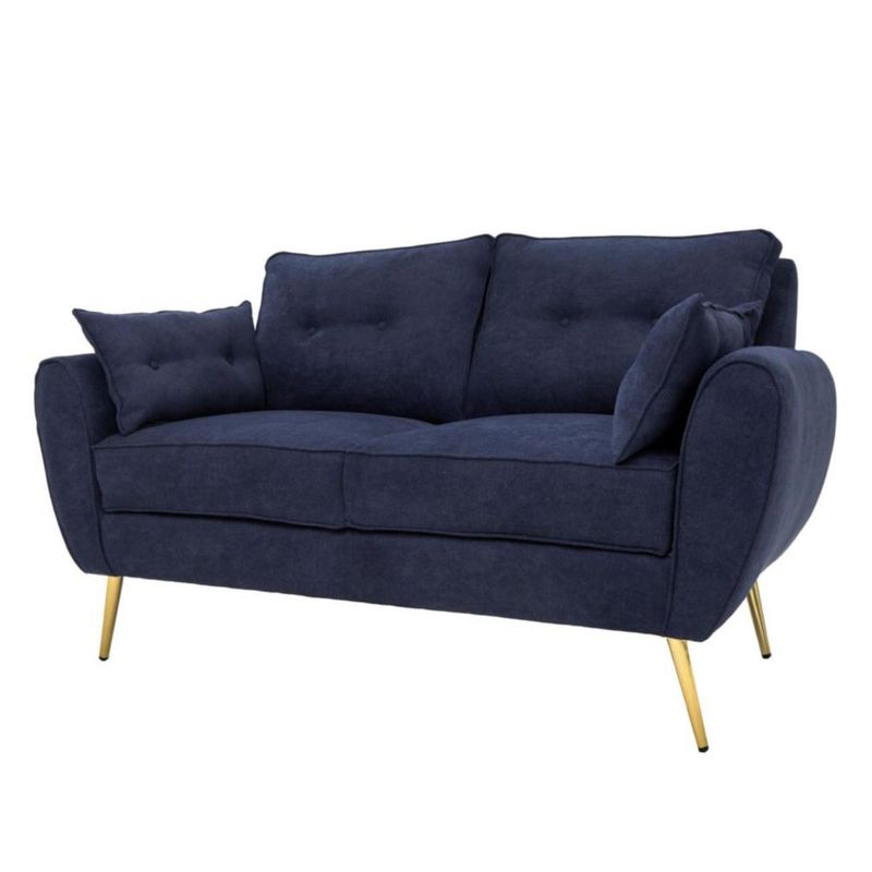 Sofá de 2 plazas con Tapizado Azul. Estructura de Madera Sólida y Patas de Metal