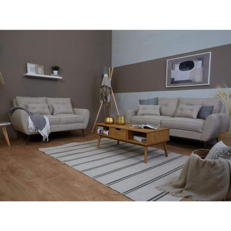 Sofá de 2 plazas con Tapizado Beige. Estructura de Madera Sólida y Patas de Metal