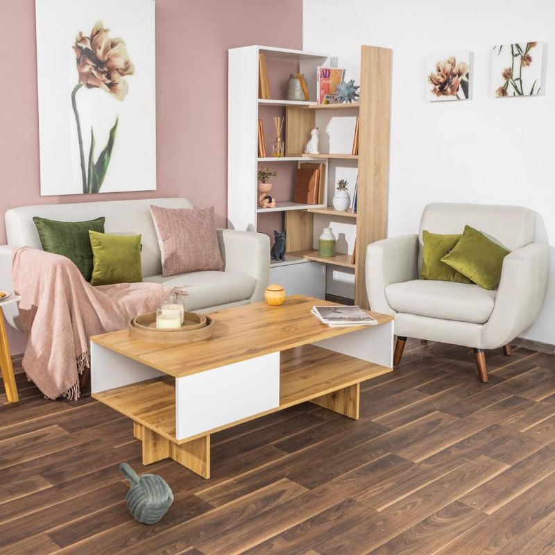 Sofá de 2 plazas con Tapizado Color Marfil. Estructura de Madera Sólida