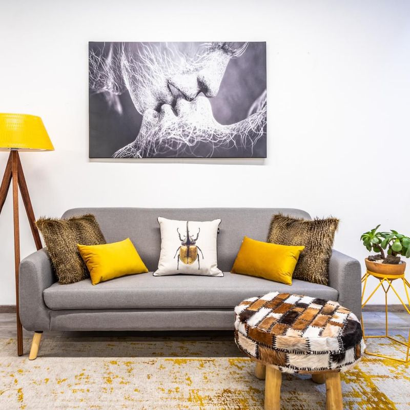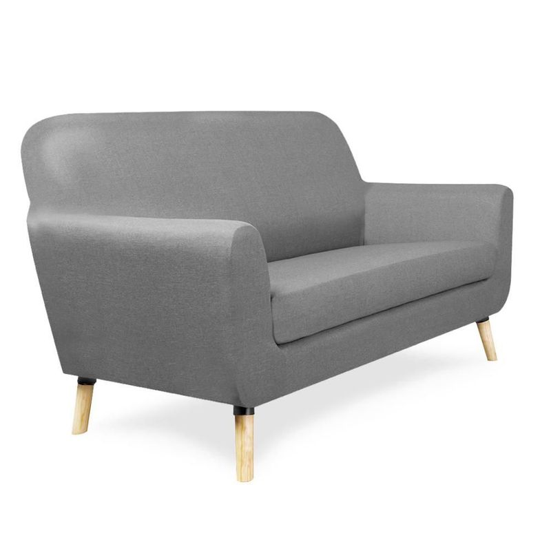 Sofá de 2 plazas con Tapizado Gris Claro. Estructura de Madera Sólida