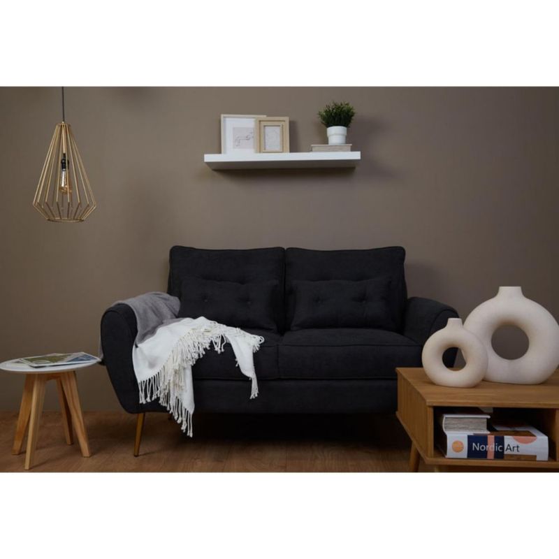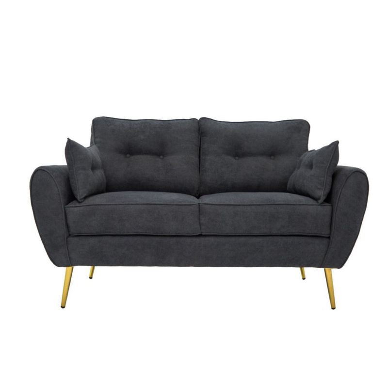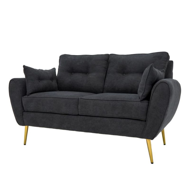Sofá de 2 plazas con Tapizado Gris Oscuro. Estructura de Madera Sólida y Patas de Metal