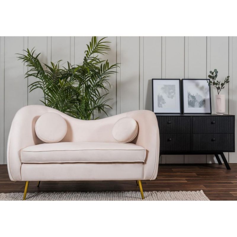 Sofá de 2 plazas Tapizado en Terciopelo Color Beige. Estructura de Madera Sólida y Patas de Metal