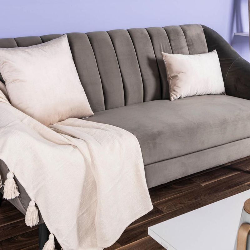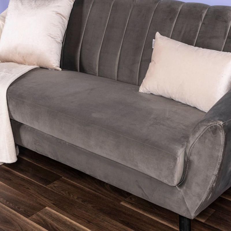 Sofá de 2 Plazas Tapizado en Terciopelo Color Gris Oscuro. Estructura de Madera Sólida