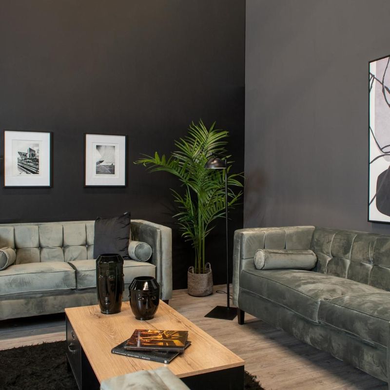 Sofá de 2 Plazas Tapizado en Terciopelo Gris Oscuro. Estructura de Madera Sólida
