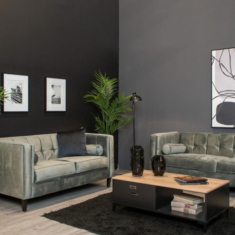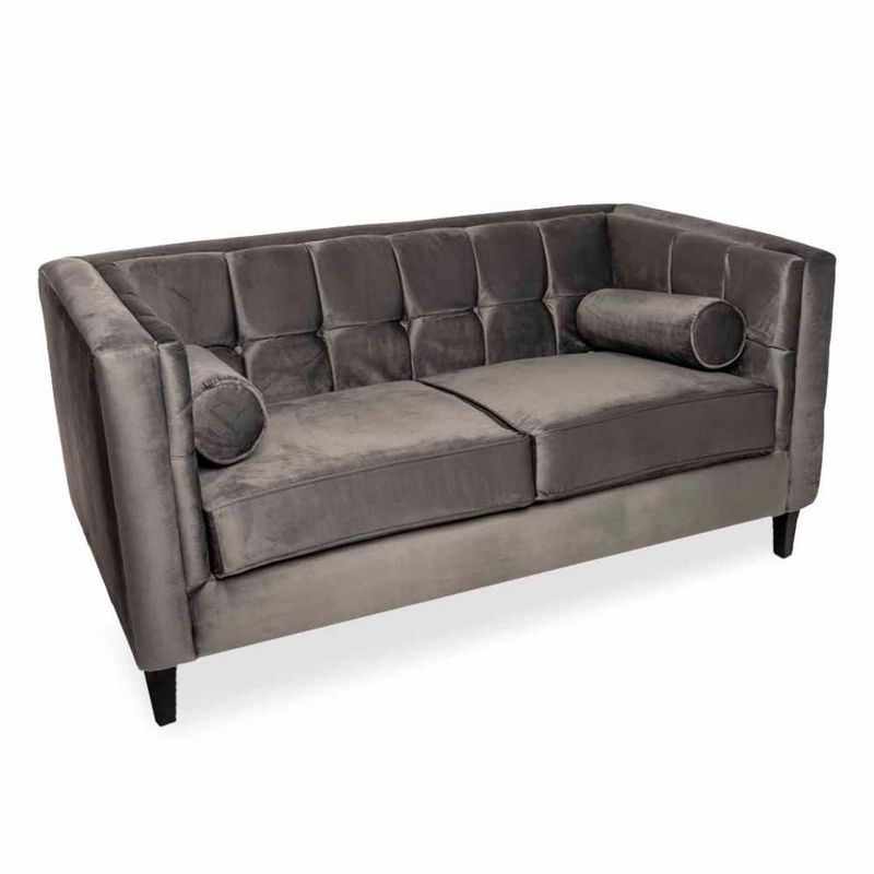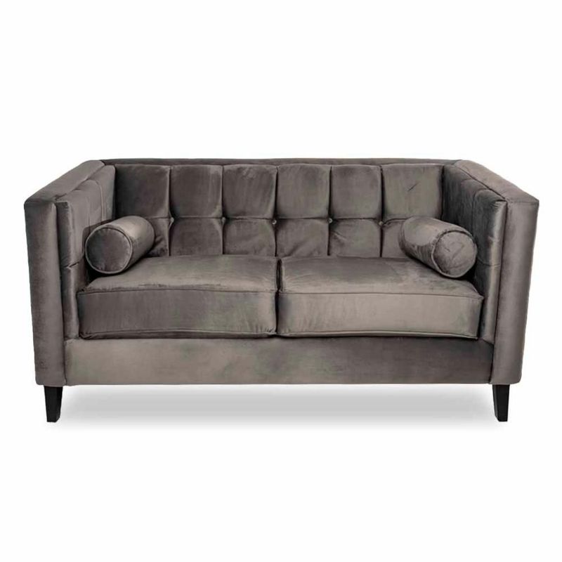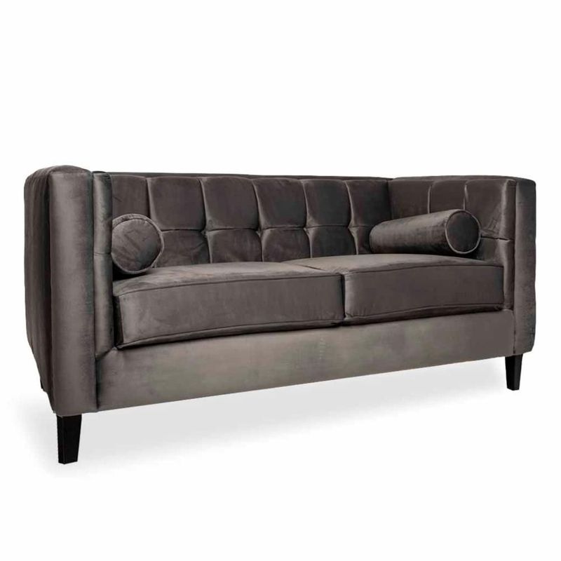 Sofá de 2 Plazas Tapizado en Terciopelo Gris Oscuro. Estructura de Madera Sólida