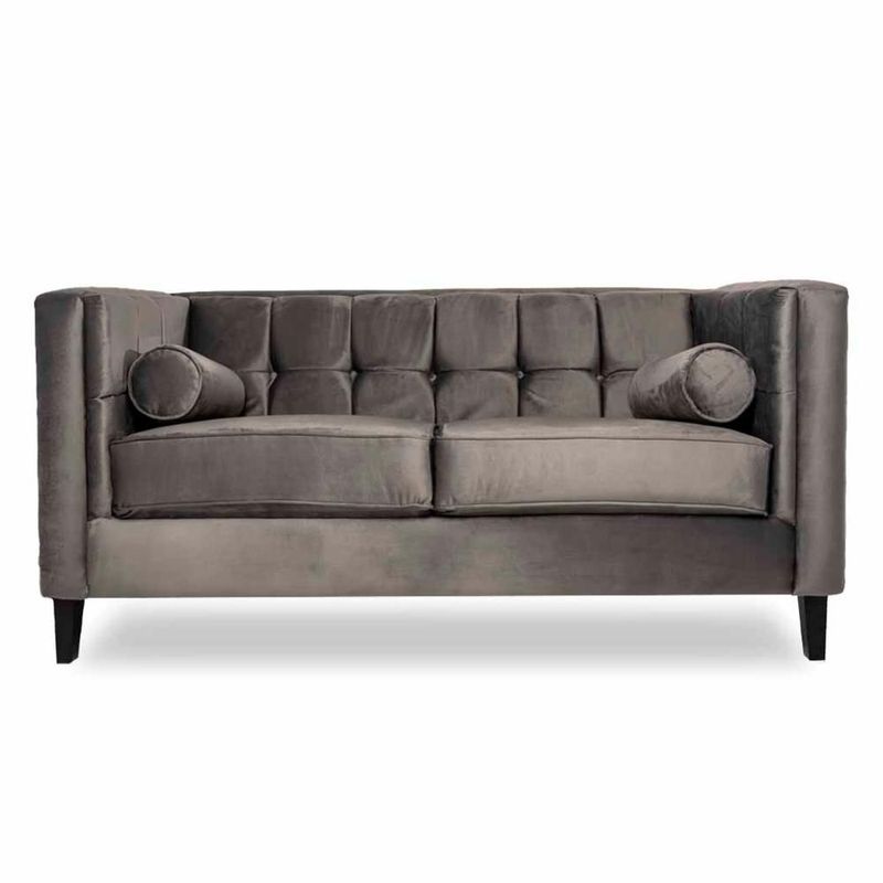 MueblesSalaSillones y SofásSofá de 2 Plazas Tapizado en Terciopelo Gris Oscuro. Estructura de Madera Sólida