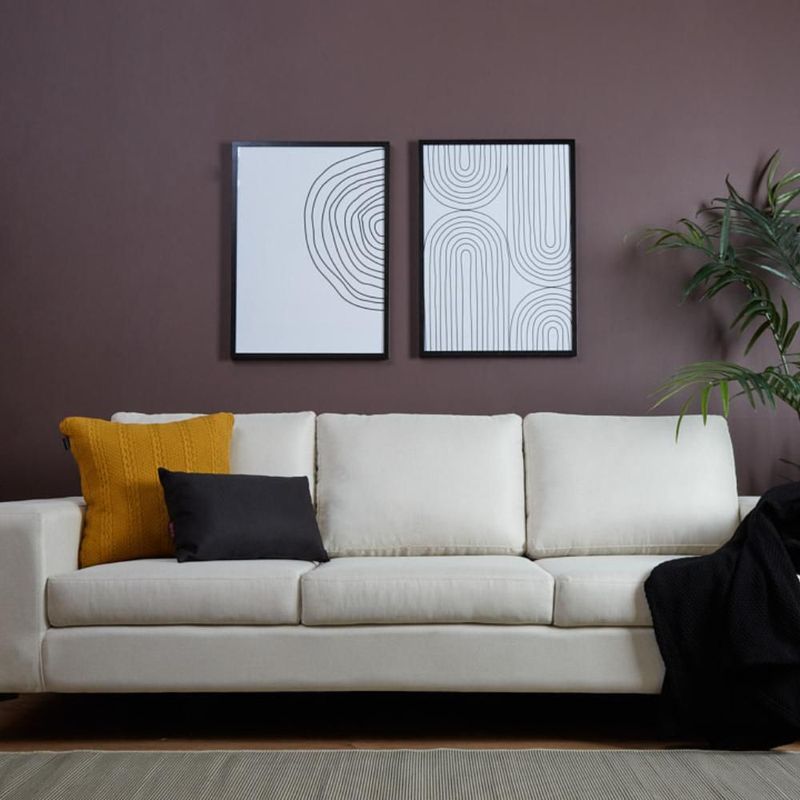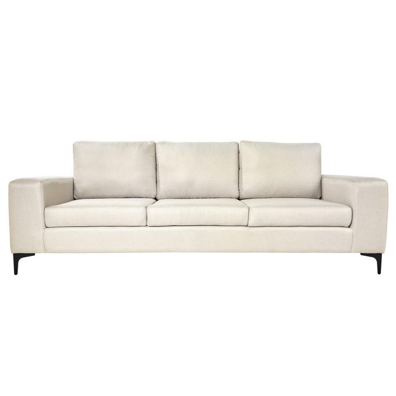 Sofá de 3 plazas con Tapizado Color Alabastro. Estructura de Madera Sólida y Patas de Acero