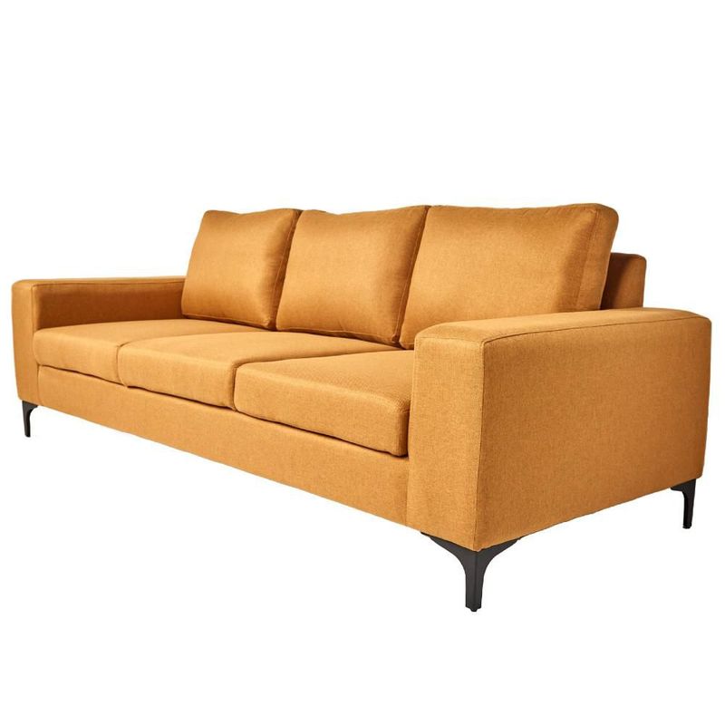 Sofá de 3 plazas con Tapizado Color Mostaza. Estructura de Madera Sólida y Patas de Acero