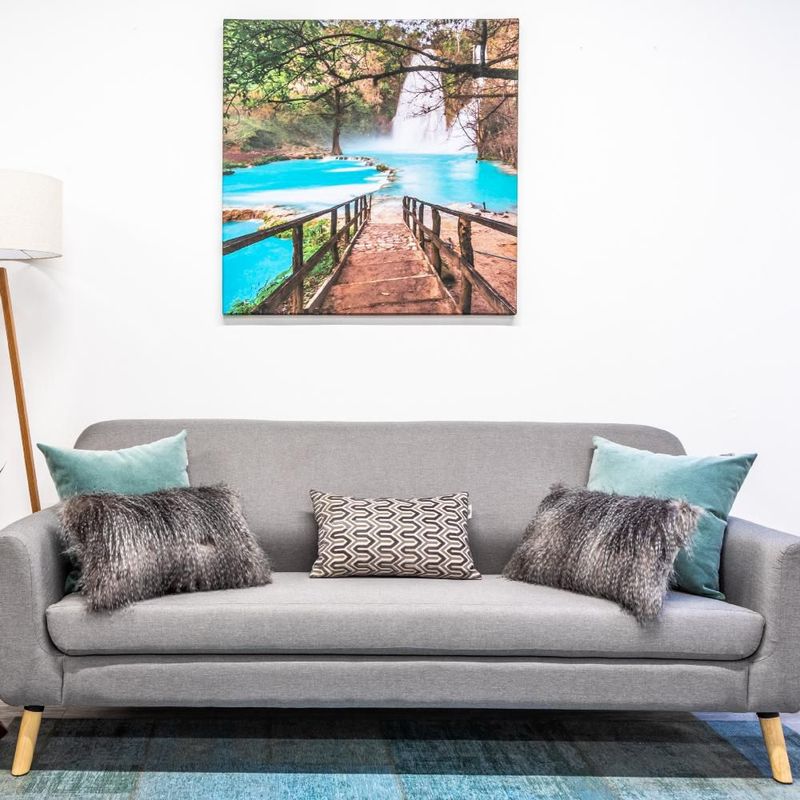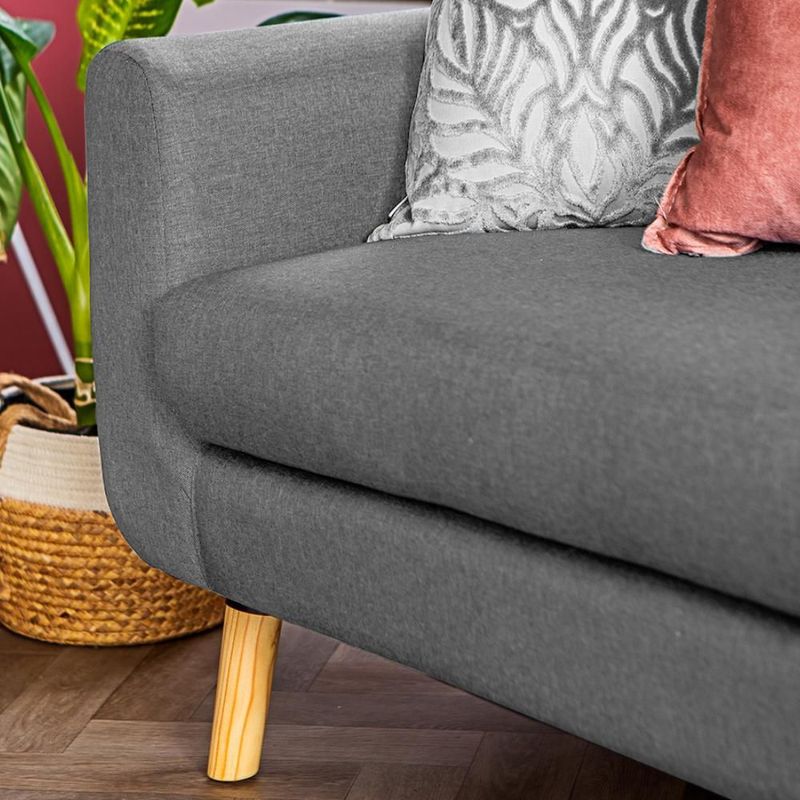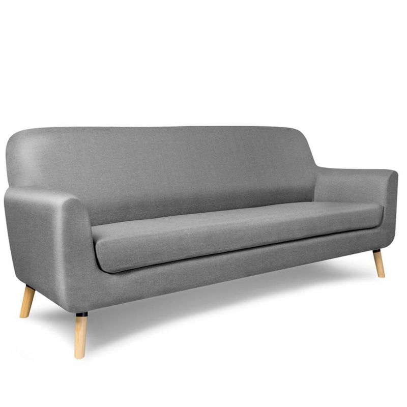 Sofá de 3 plazas con Tapizado Gris Claro. Estructura de Madera Sólida