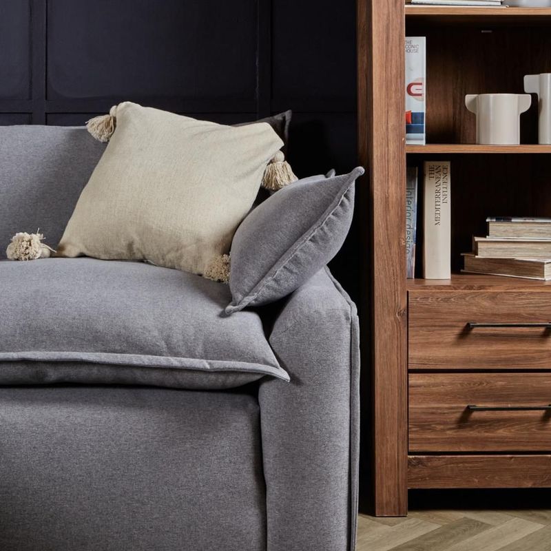 MueblesSalaSillones y SofásSofá de 3 Plazas Tapizado Color Gris Oxford. Estructura de Madera Sólida