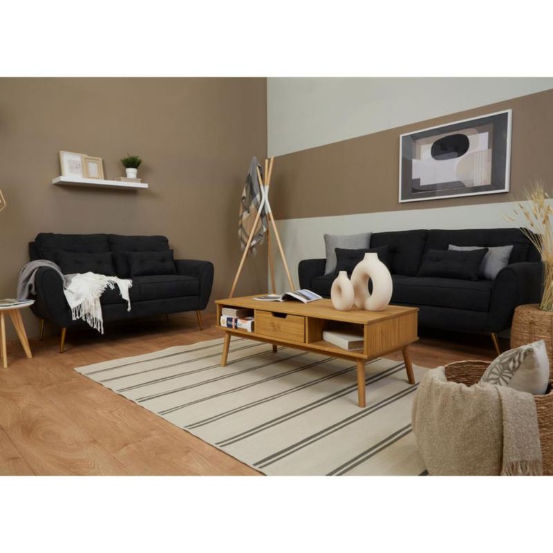 Sofá de 3 plazas Tapizado con Tela Gris. Estructura de Madera Sólida y Patas de Metal