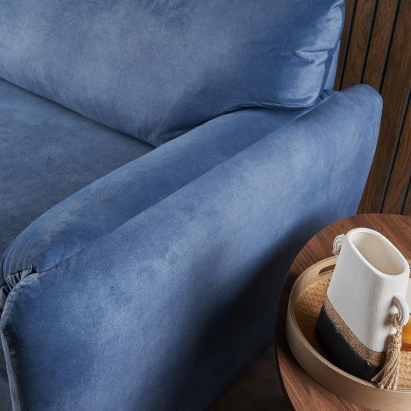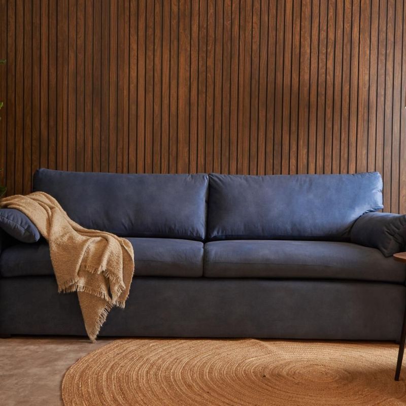 Sofá de 3 Plazas Tapizado en Tela Premium Azul Plomo. Estructura de Madera Sólida