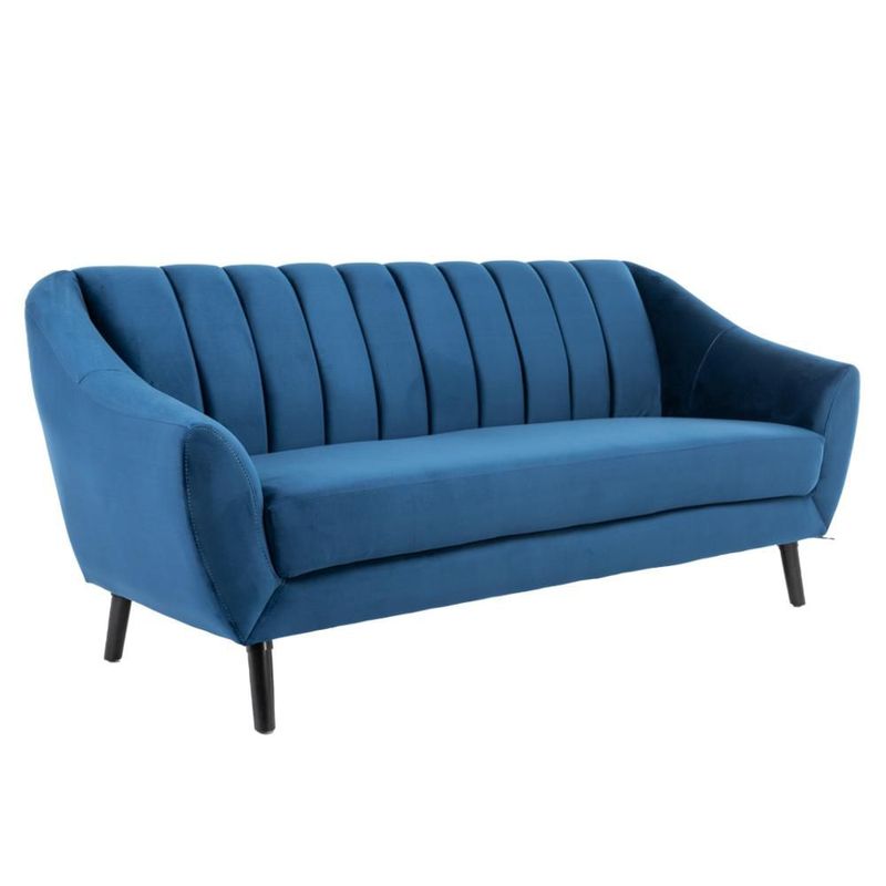 MueblesSalaSillones y SofásSofá de 3 Plazas Tapizado en Terciopelo Color Azul. Estructura de Madera Sólida