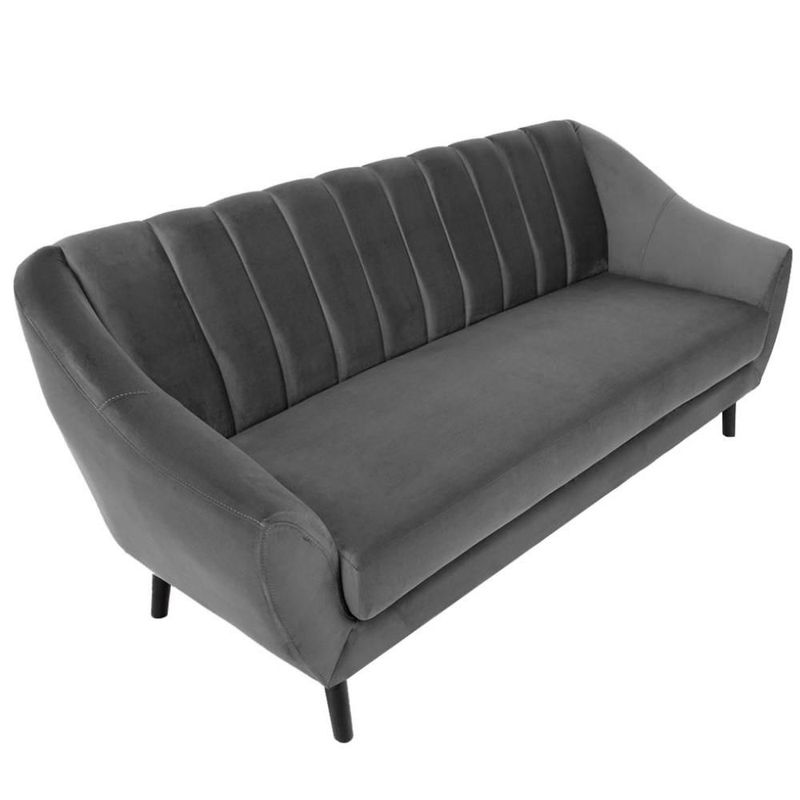 MueblesSalaSillones y SofásSofá de 3 Plazas Tapizado en Terciopelo Color Gris Oscuro. Estructura de Madera Sólida