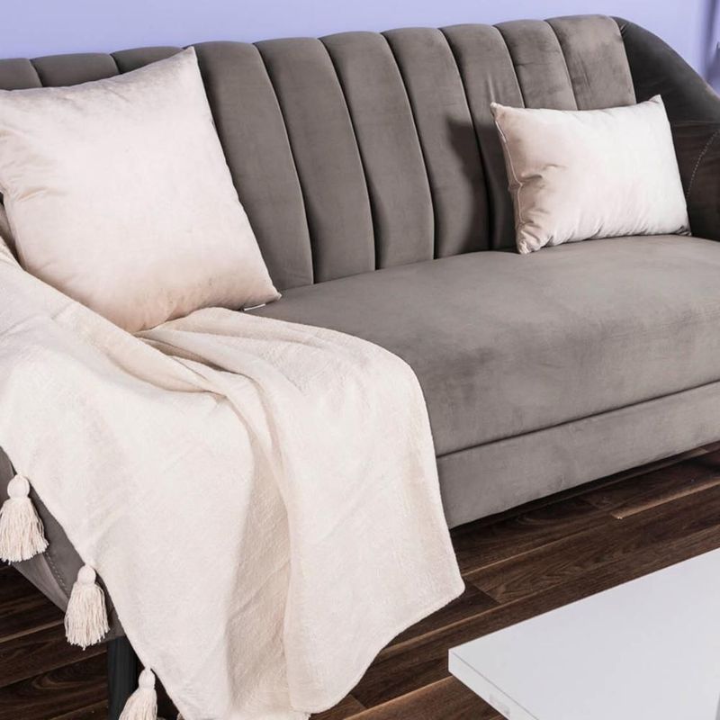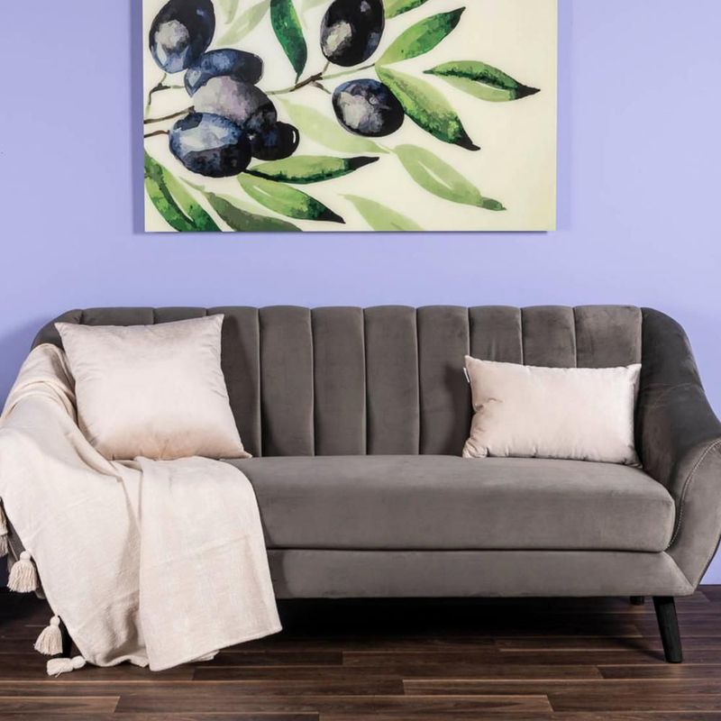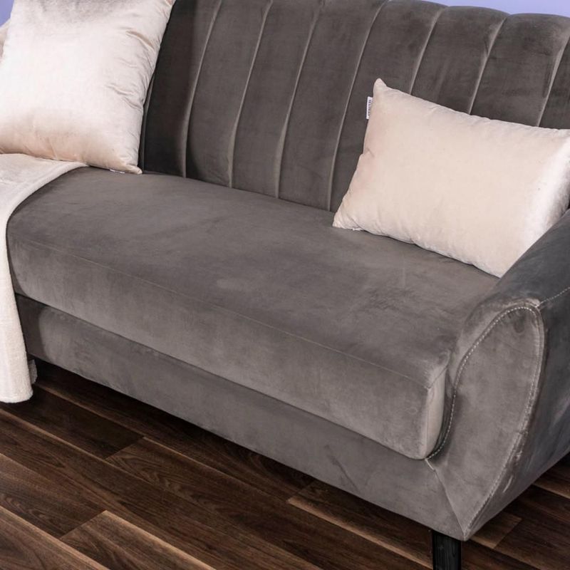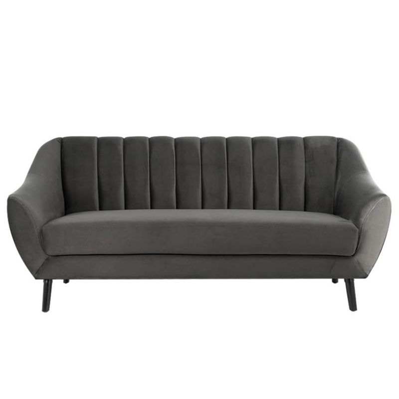 Sofá de 3 Plazas Tapizado en Terciopelo Color Gris Oscuro. Estructura de Madera Sólida