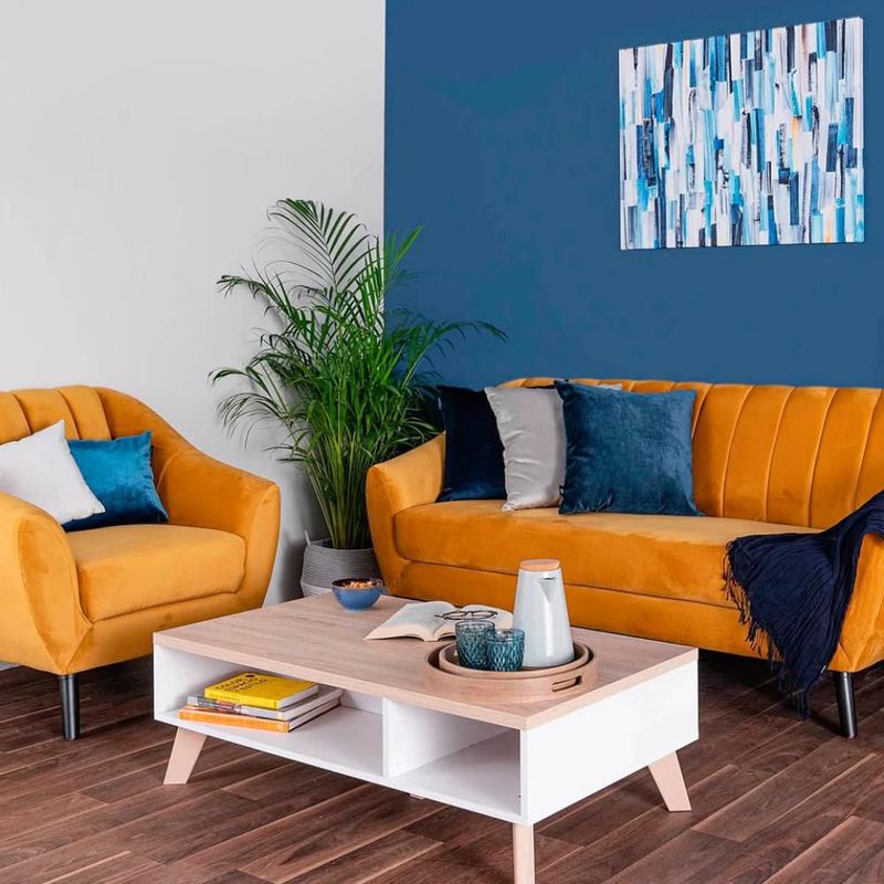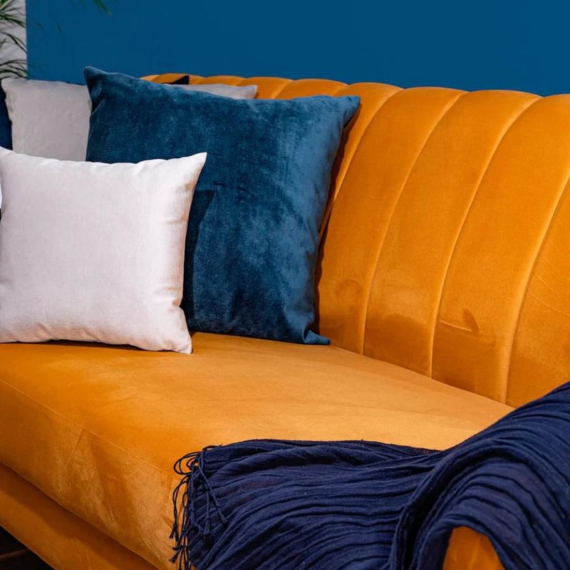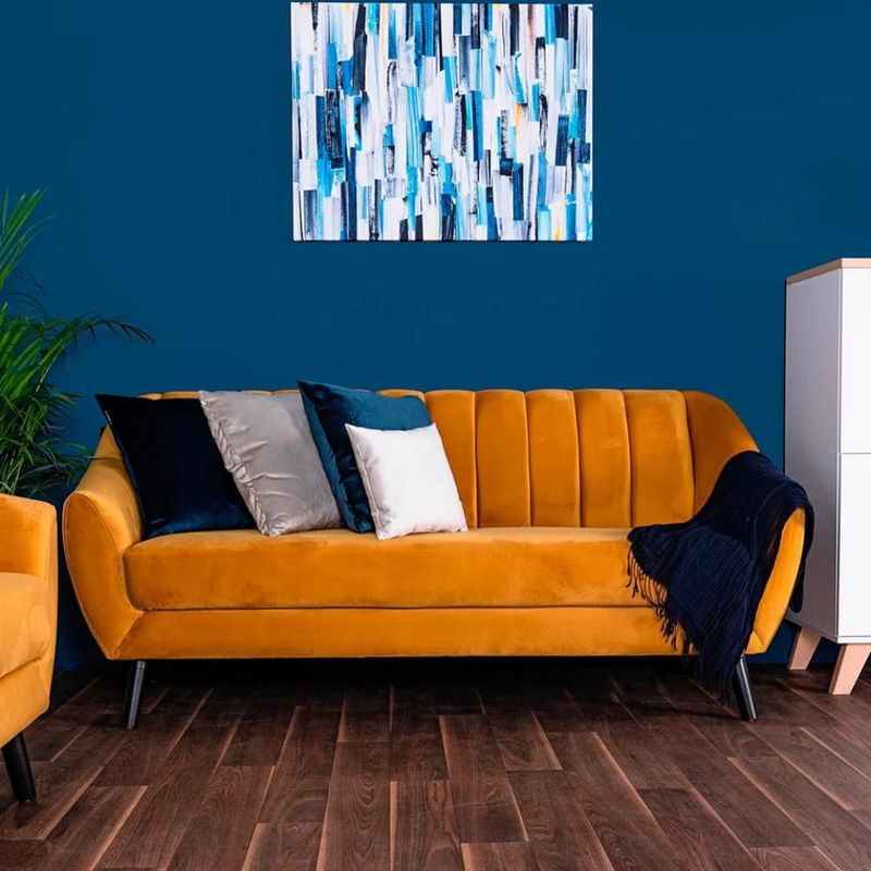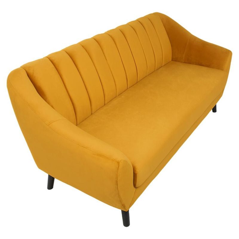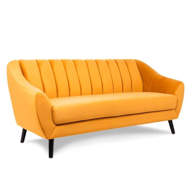 Sofá de 3 Plazas Tapizado en Terciopelo Color Mostaza. Estructura de Madera Sólida