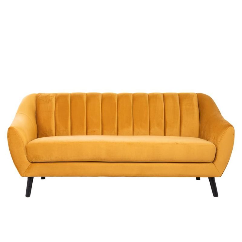 Sofá de 3 Plazas Tapizado en Terciopelo Color Mostaza. Estructura de Madera Sólida