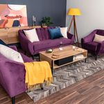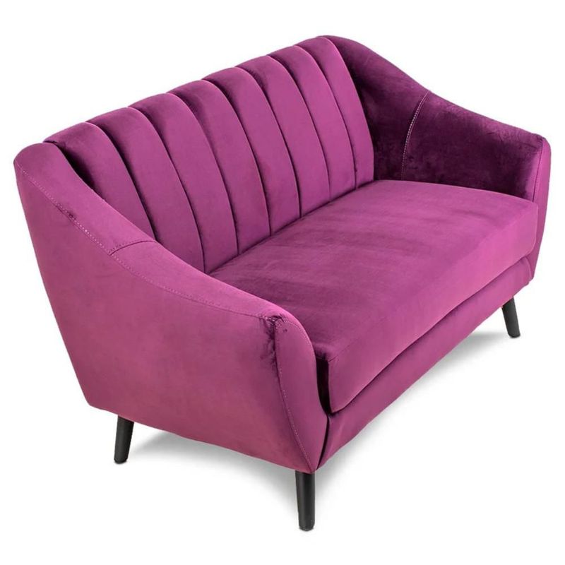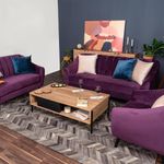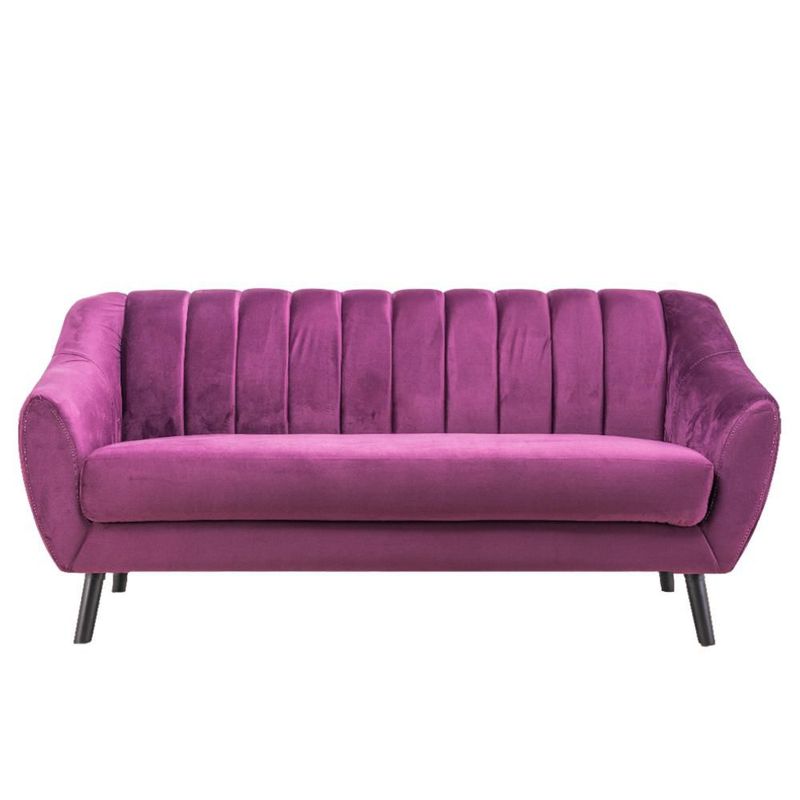 Sofá de 3 Plazas Tapizado en Terciopelo Color Uva. Estructura de Madera Sólida