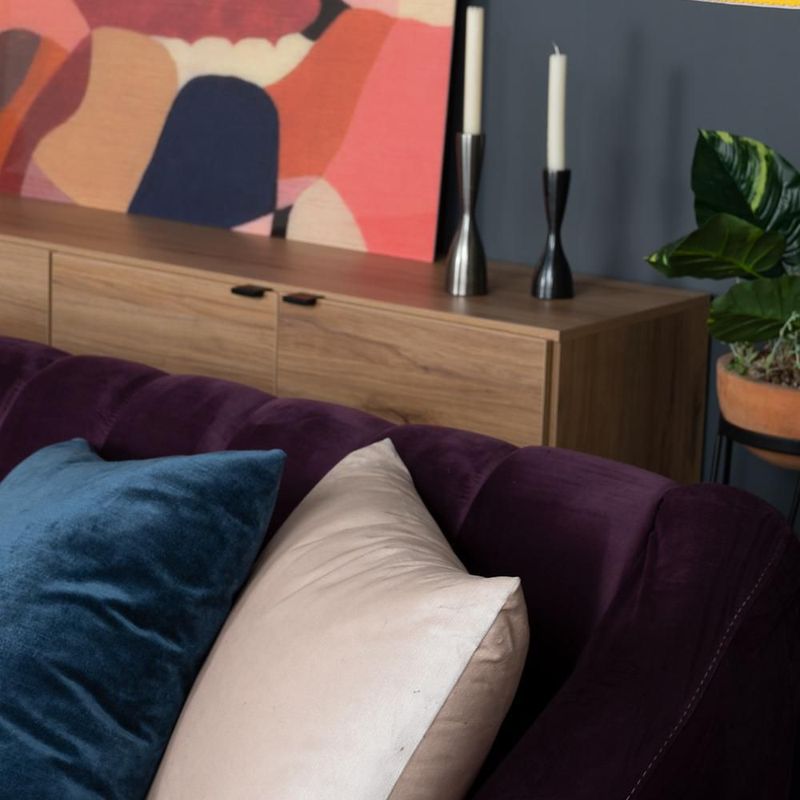 MueblesSalaSillones y SofásSofá de 3 Plazas Tapizado en Terciopelo Color Uva. Estructura de Madera Sólida