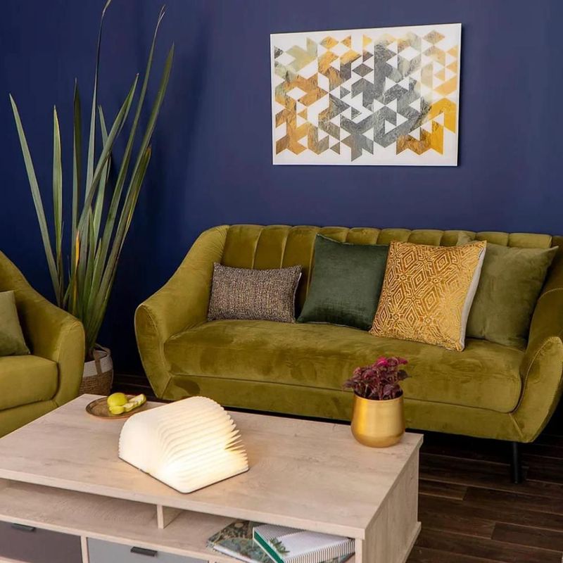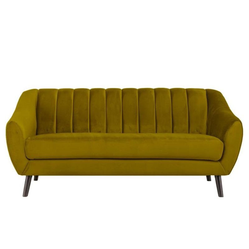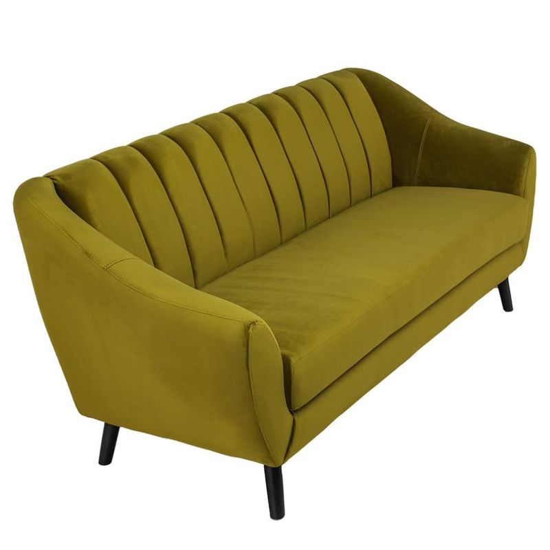 Sofá de 3 Plazas Tapizado en Terciopelo Color Verde Olivo. Estructura de Madera Sólida
