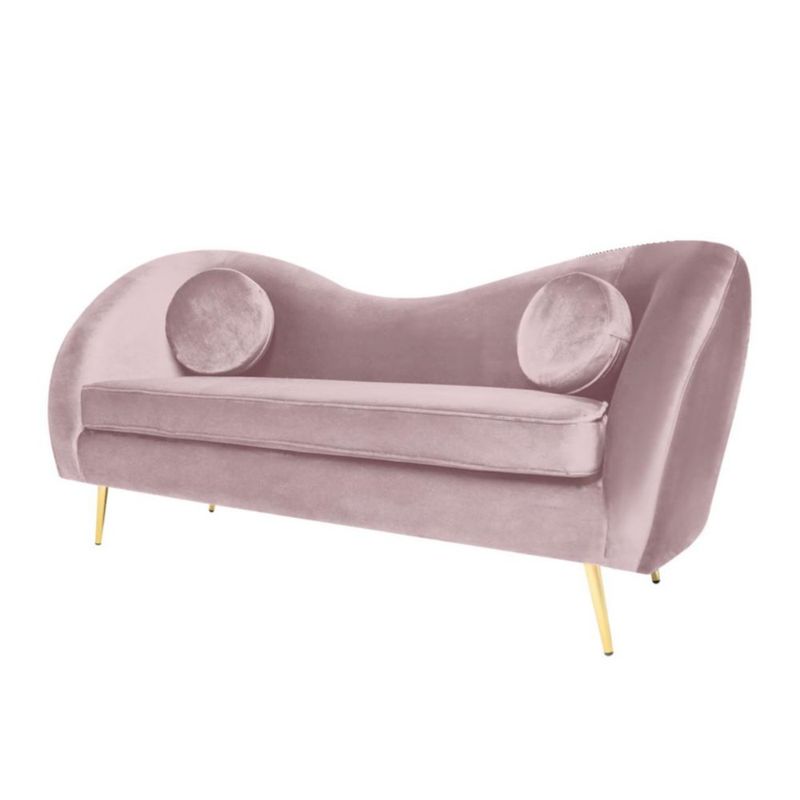 Sofá de 3 plazas Tapizado en Terciopelo Rosa. Estructura de Madera Sólida y Patas de Metal