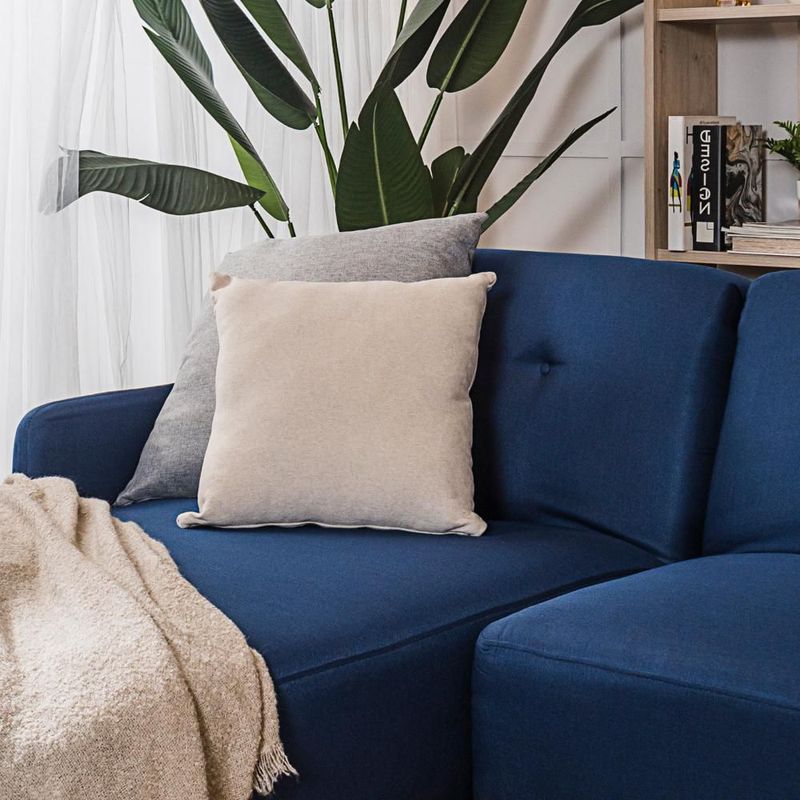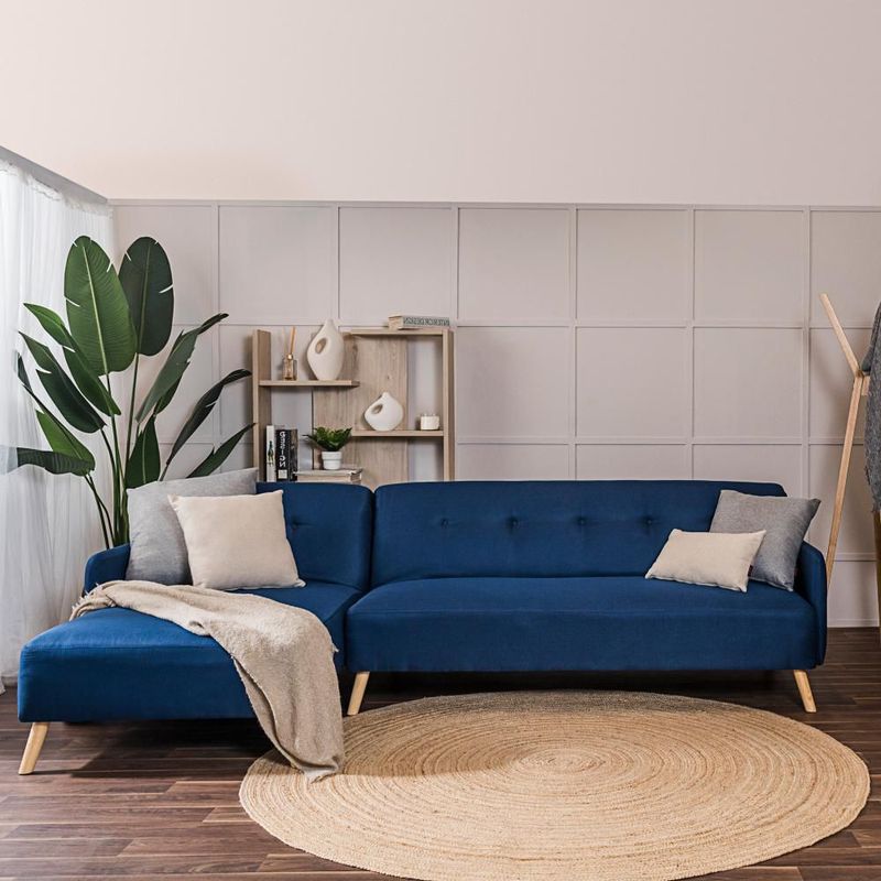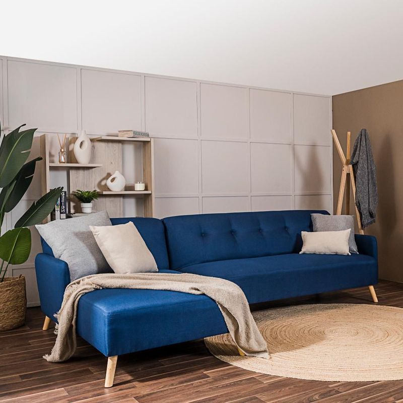 Sofá Escuadra Convertible en 2 Sofá Cama Izquierdo con Tapizado Color Azul. Estructura de Madera Sólida