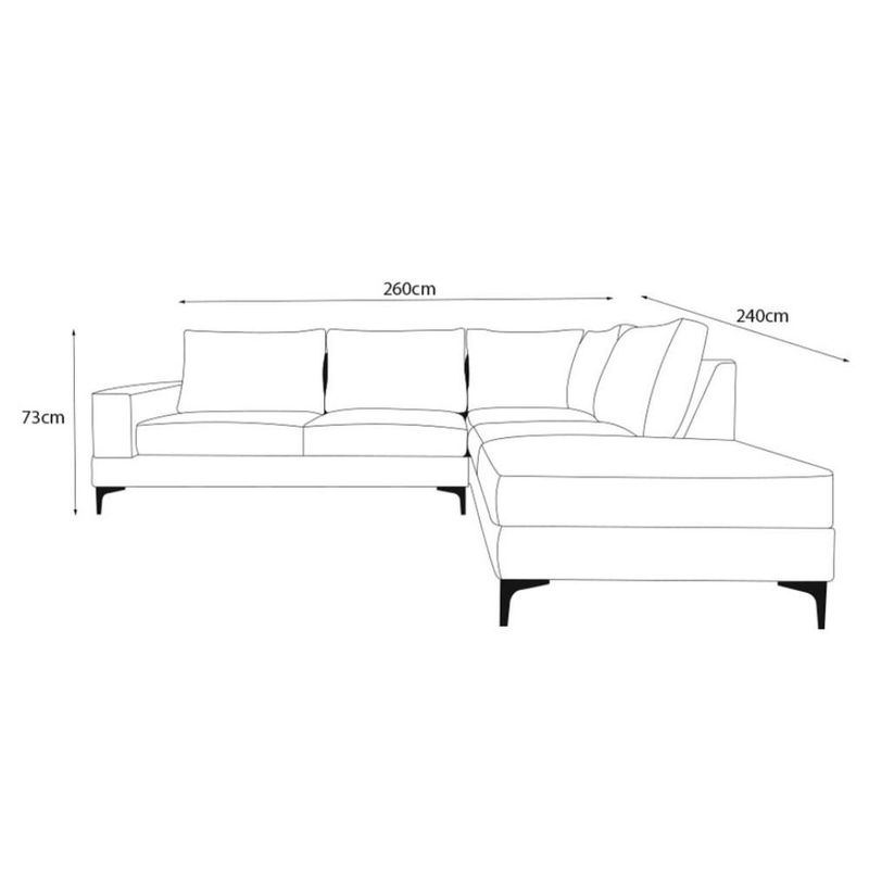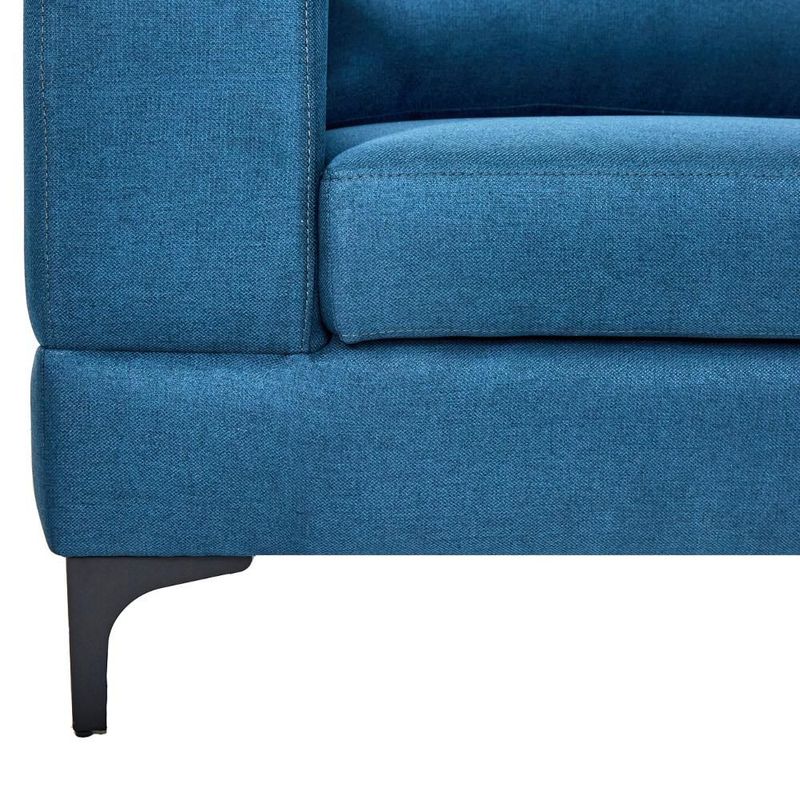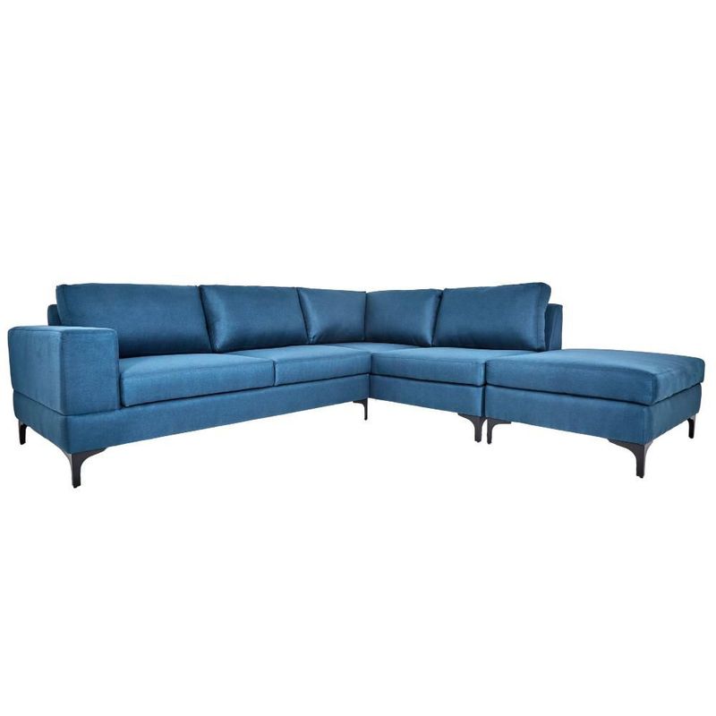 Sofá Escuadra Derecha con Tapizado Color Azul. Estructura de Madera Sólida y Patas de Acero