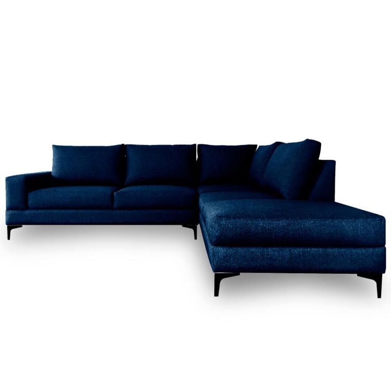 Sofá Escuadra Derecha con Tapizado Color Azul Noche. Estructura de Madera Sólida y Patas de Acero