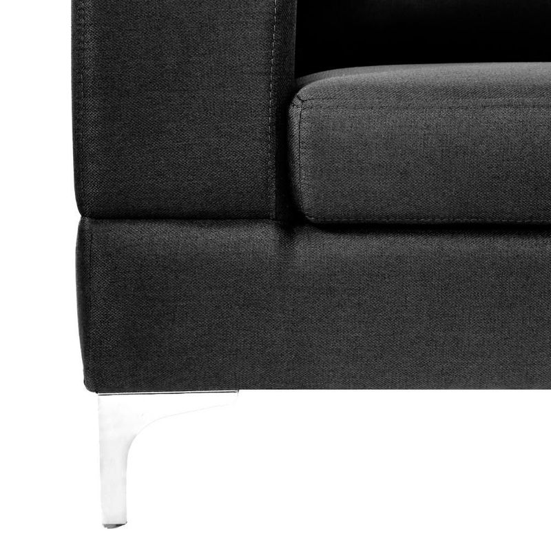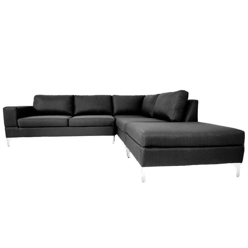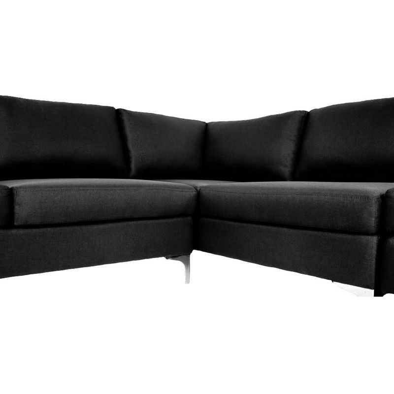 Sofá Escuadra Derecha con Tapizado Color Negro. Estructura de Madera Sólida y Patas de Acero