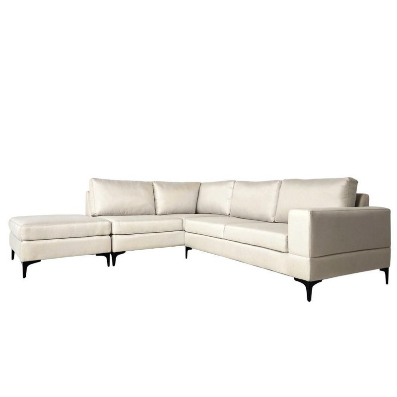 Sofá Escuadra Izquierda con Tapizado Color Alabastro. Estructura de Madera Sólida y Patas de Acero