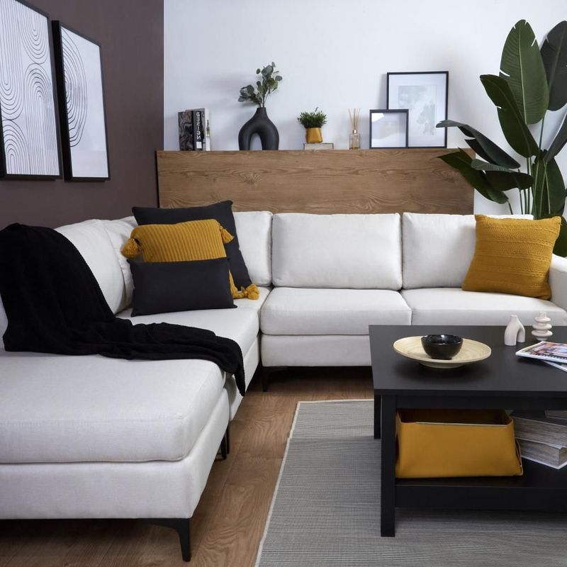 MueblesSalaSalasSofá Escuadra Izquierda con Tapizado Color Alabastro. Estructura de Madera Sólida y Patas de Acero