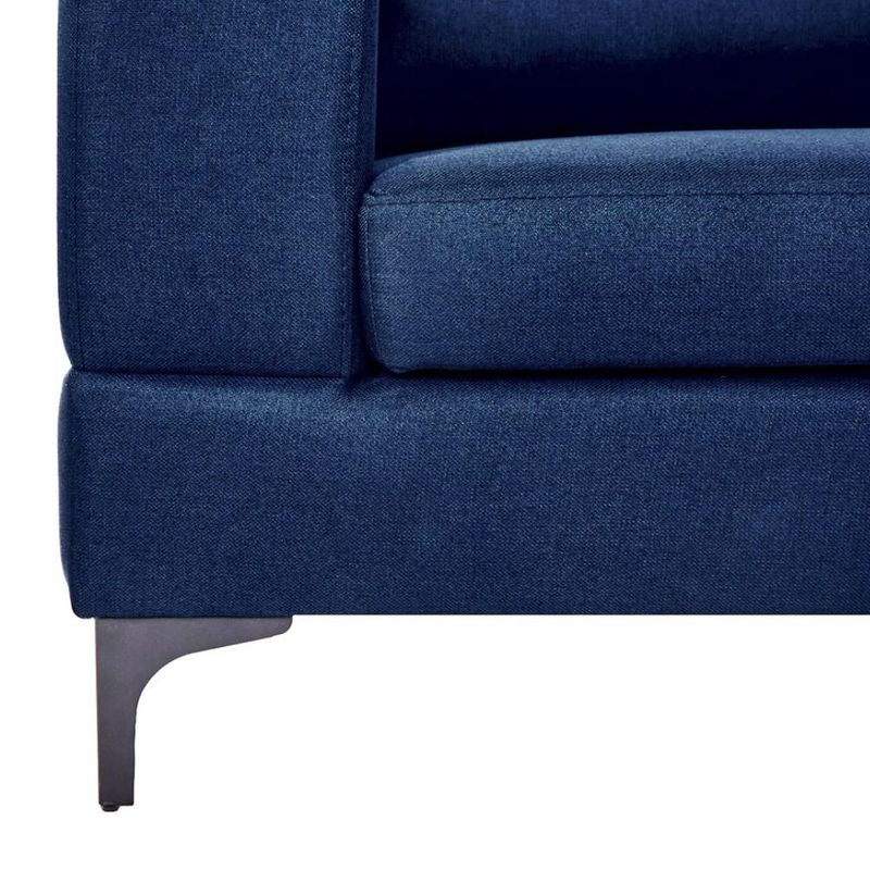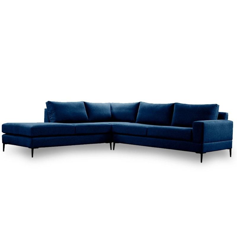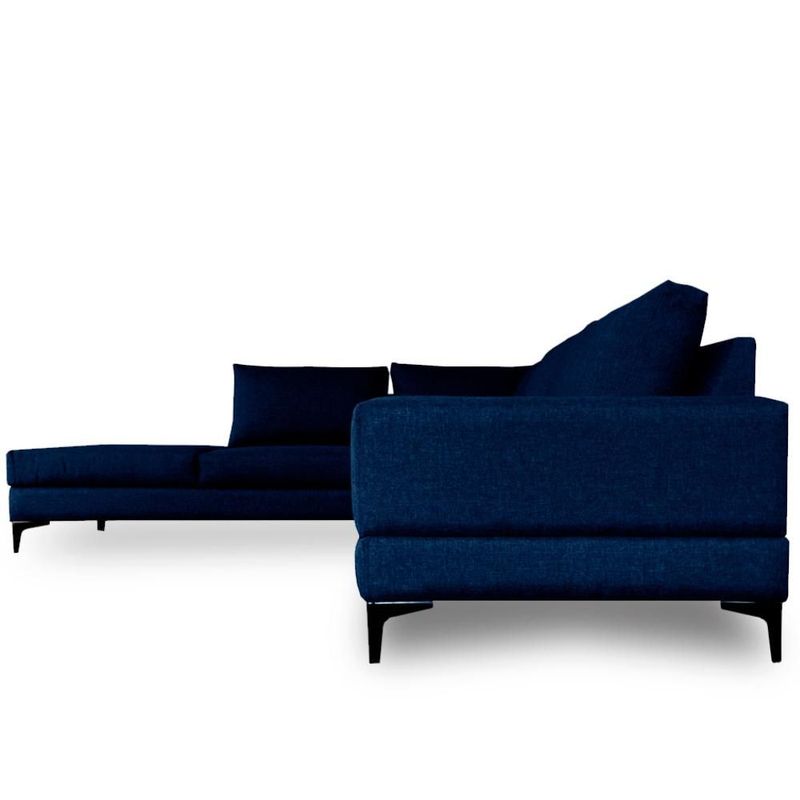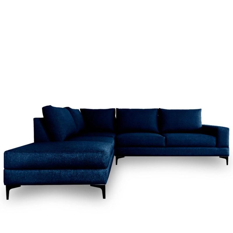 Sofá Escuadra Izquierda con Tapizado Color Azul Noche. Estructura de Madera Sólida y Patas de Acero